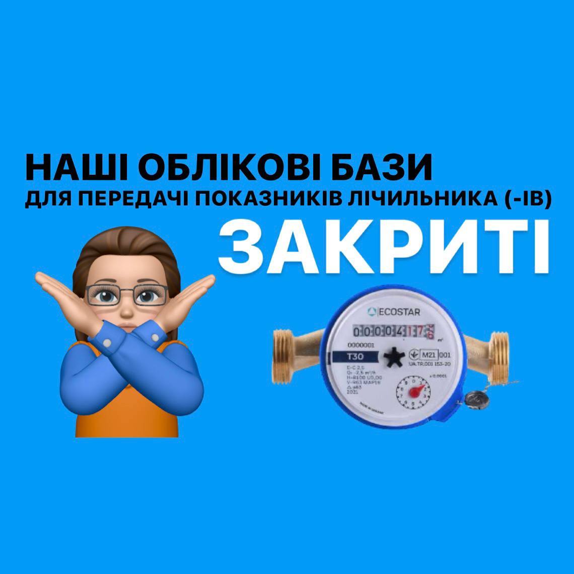 ОБЛІКОВІ БАЗИ ДЛЯ ПЕРЕДАЧІ ПОКАЗНИКІВ ЛІЧИЛЬНИКА (-ІВ) ЗАКРИТІ!