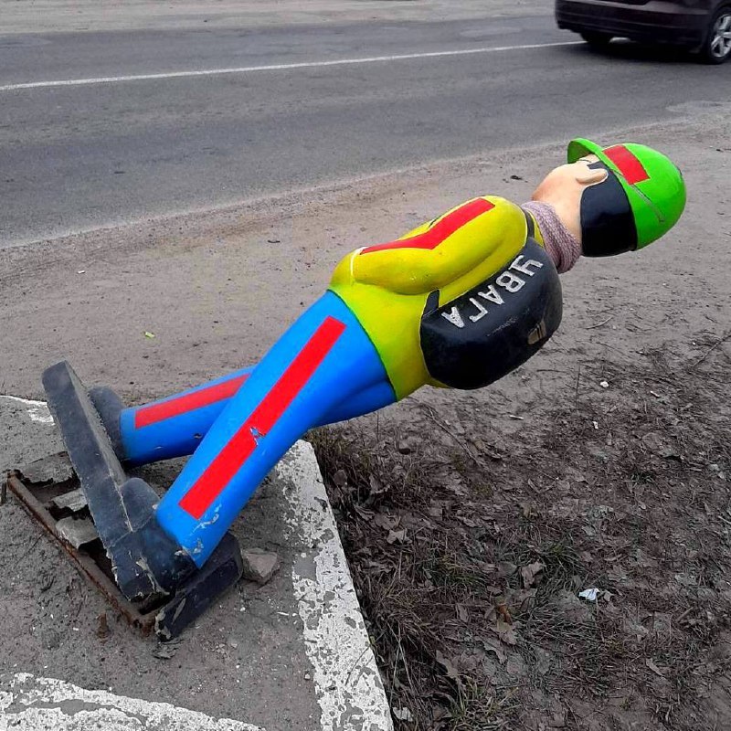І все, було б добре, якби не пошкоджений пластиковий манекен «Школяр» на одному із нерегульованих пішохідних переходах по вул.ДЕКАБРИСТІВ (поблизу академічного ліцею «Престиж»).