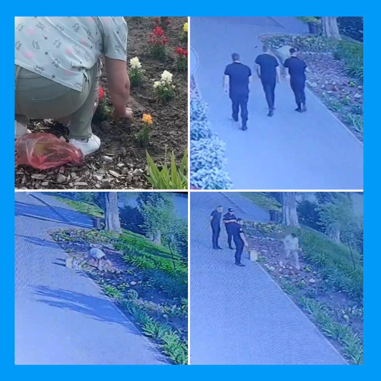 На опублікованому відео чітко видно, як жінка без жодного докору совісті вириває квіти разом із корінням. Це не просто аморально — це порушення громадського порядку та зневага до чужої праці.