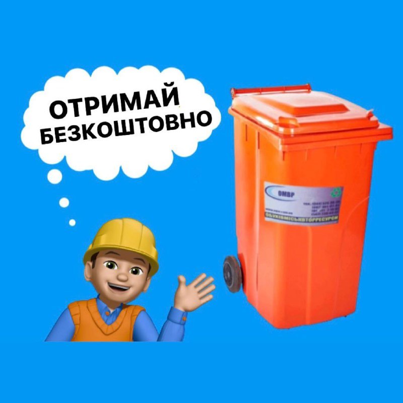 Власникам домогосподарств в БЕЗКОШТОВНЕ користування надається пластиковий контейнер місткістю 120 літрів, що залежить від кількості проживаючих осіб, для тимчасового зберігання ТПВ.