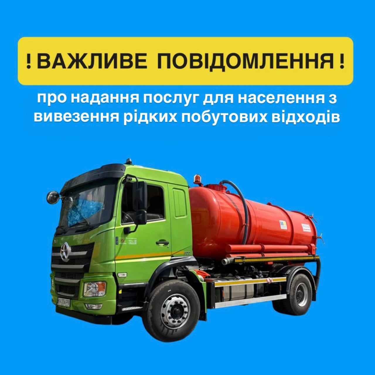 ДЛЯ НАСЕЛЕННЯ: ПОВІДОМЛЕННЯ ПРО НАДАННЯ ПОСЛУГ З ВИВЕЗЕННЯ РІДКИХ ПОБУТОВИХ ВІДХОДІВ
