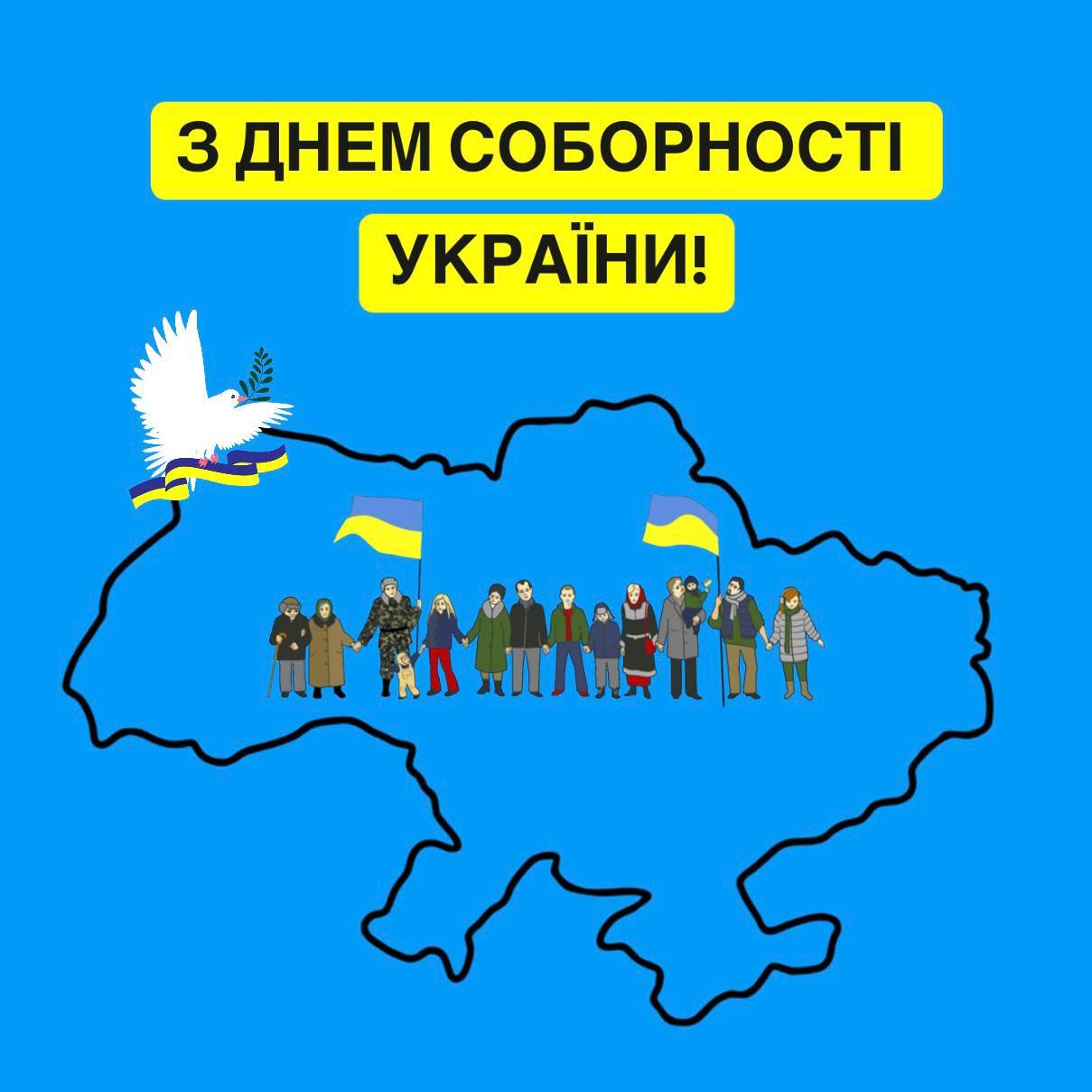 Сьогодні український народ відзначає важливу дату своєї багатовікової історії – День Соборності. Це свято об’єднання українських земель в єдину самостійну державу. Ми вкотре змушені боротися за нашу єдність, незалежність та свободу. За час повномасштабної війни, яку розв'язала росія, ми довели, що ми сильна та незламна нація.