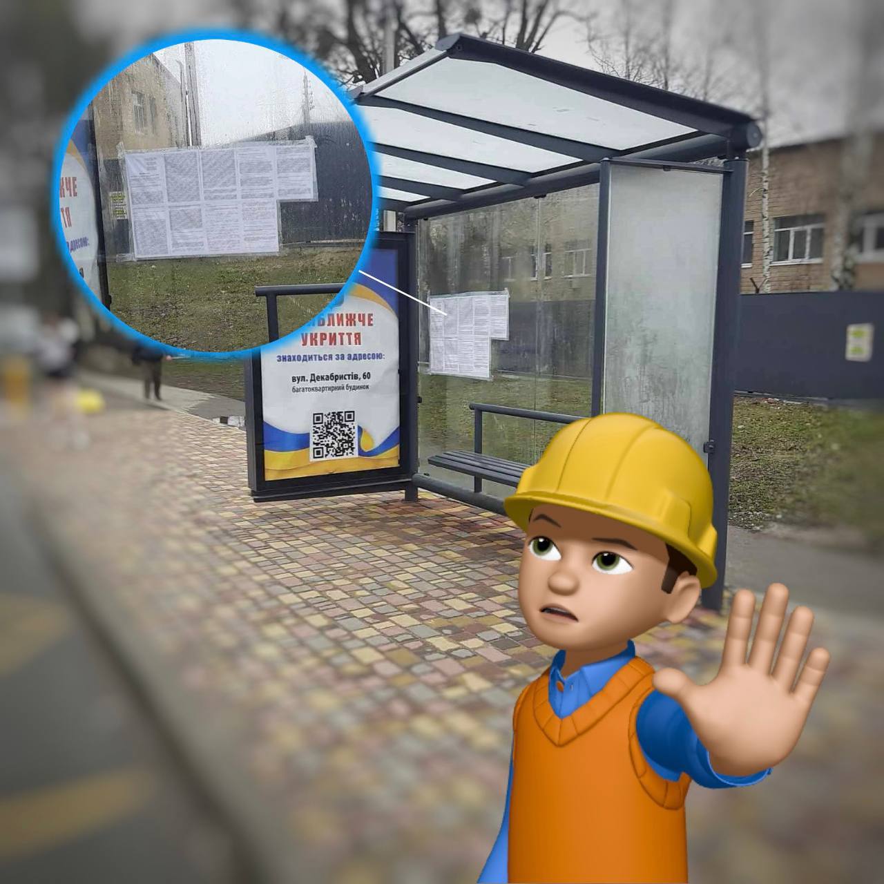 Працівниками благоустрою КП «ККП м.Василькова» було виявлено незаконне, самовільне розміщення інформаційних оголошень на нещодавно встановленій, новій зупинці громадського транспорту по вул.ДЕКАБРИСТІВ.