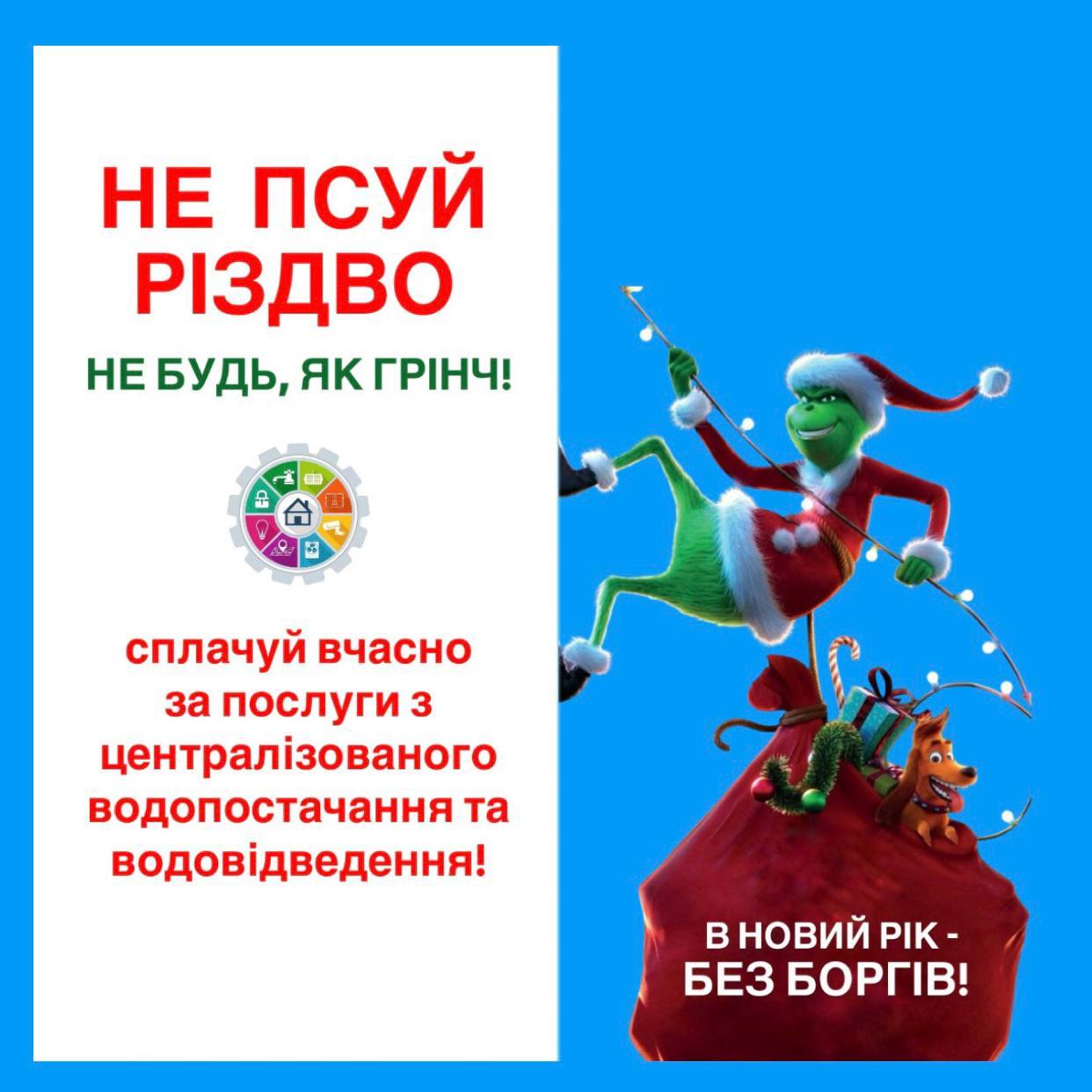 У зв’язку з чим та на передодні нового року, звертаємось до всіх боржників з нагадуванням про добру традицію зустрічати новий рік без боргів та просимо вирішити питання з оплати спожитих послуг, щоб підприємство і надалі належним чином виконувало свої обов’язки з безперебійного цілодобового водозабезпечення міста.