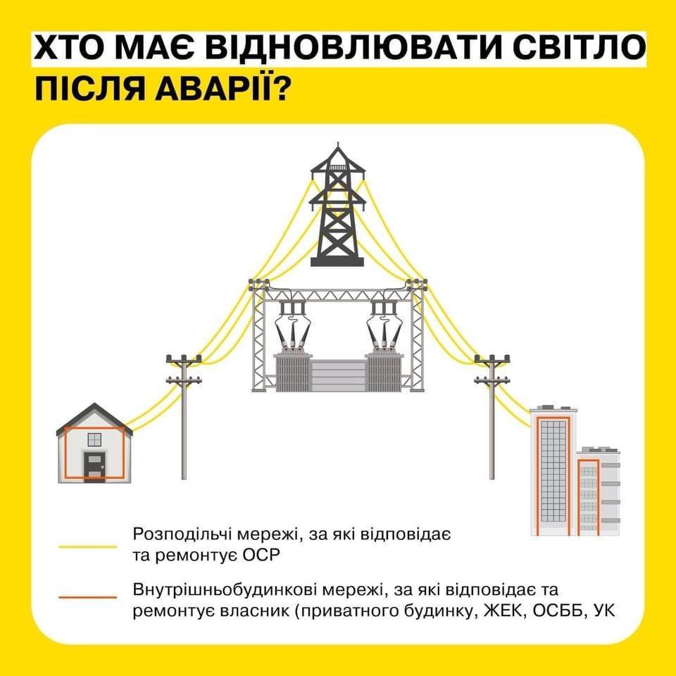 -  якщо проблема не в них, ОСББ або керуюча компанія подасть заявку до ДТЕК Київські регіональні електромережі для вирішення проблеми. Їхні спеціалісти перевірять та усунуть несправність на обладнанні.