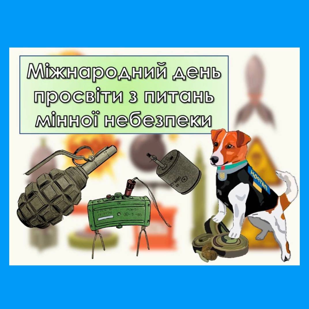Сьогодні – Міжнародний день просвіти з питань мінної небезпеки та допомоги з протимінної діяльності Внаслідок російської агресії значна частина нашої держави забруднена вибухонебезпечними предметами (ВНП).