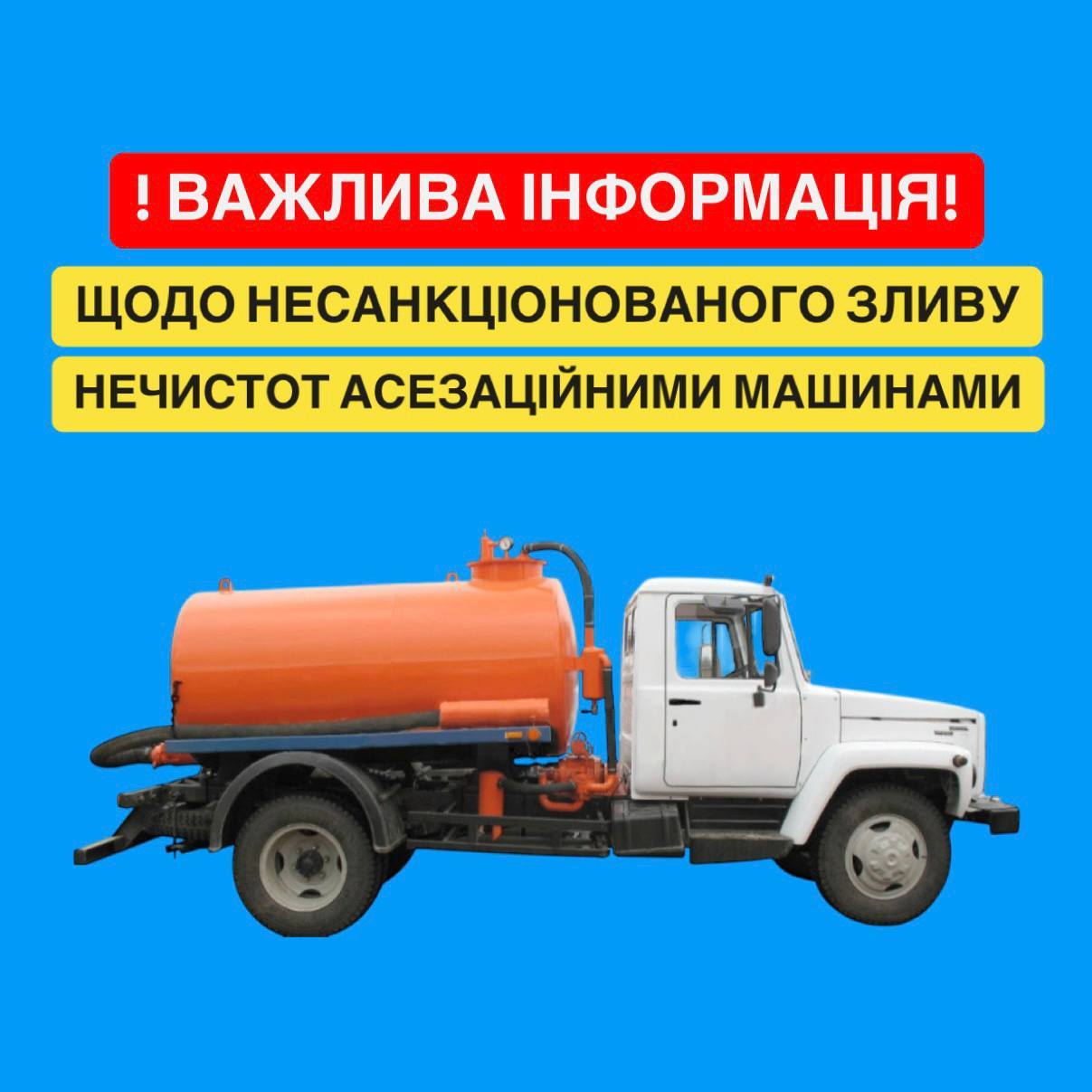 ВІДПОВІДАЛЬНІСТЬ ЗА НЕСАНКЦІОНОВАНИЙ ЗЛИВ НЕЧИСТОТ АСЕНІЗАЦІЙНИМИ МАШИНАМИ У НЕПРИСТОСОВАНИХ ДЛЯ ЦЬОГО МІСЦЯХ