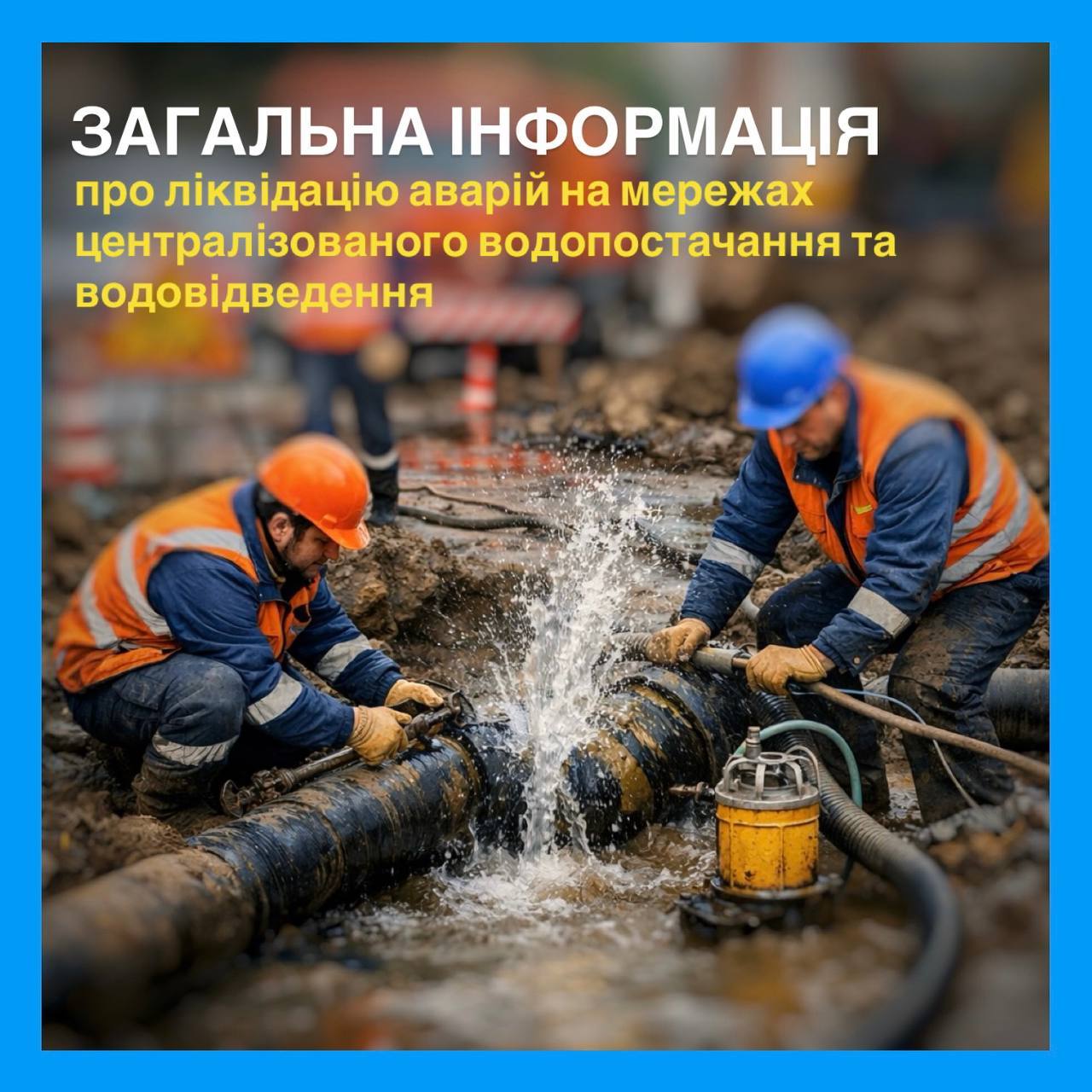 ЗАГАЛЬНА ІНФОРМАЦІЯ ПРО ЛІКВІДАЦІЮ АВАРІЙ НА МЕРЕЖАХ ЦЕНТРАЛІЗОВАНОГО ВОДОПОСТАЧАННЯ ТА ВОДОВІДВЕДЕННЯ