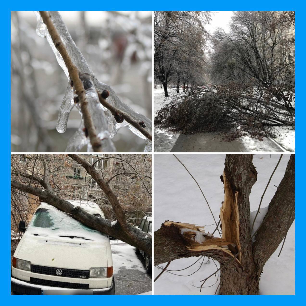 У зв’язку зі складними погодними умовами — ожеледицею, налипанням мокрого снігу та поривчастим вітром — зростає ризик падіння гілок і дерев.