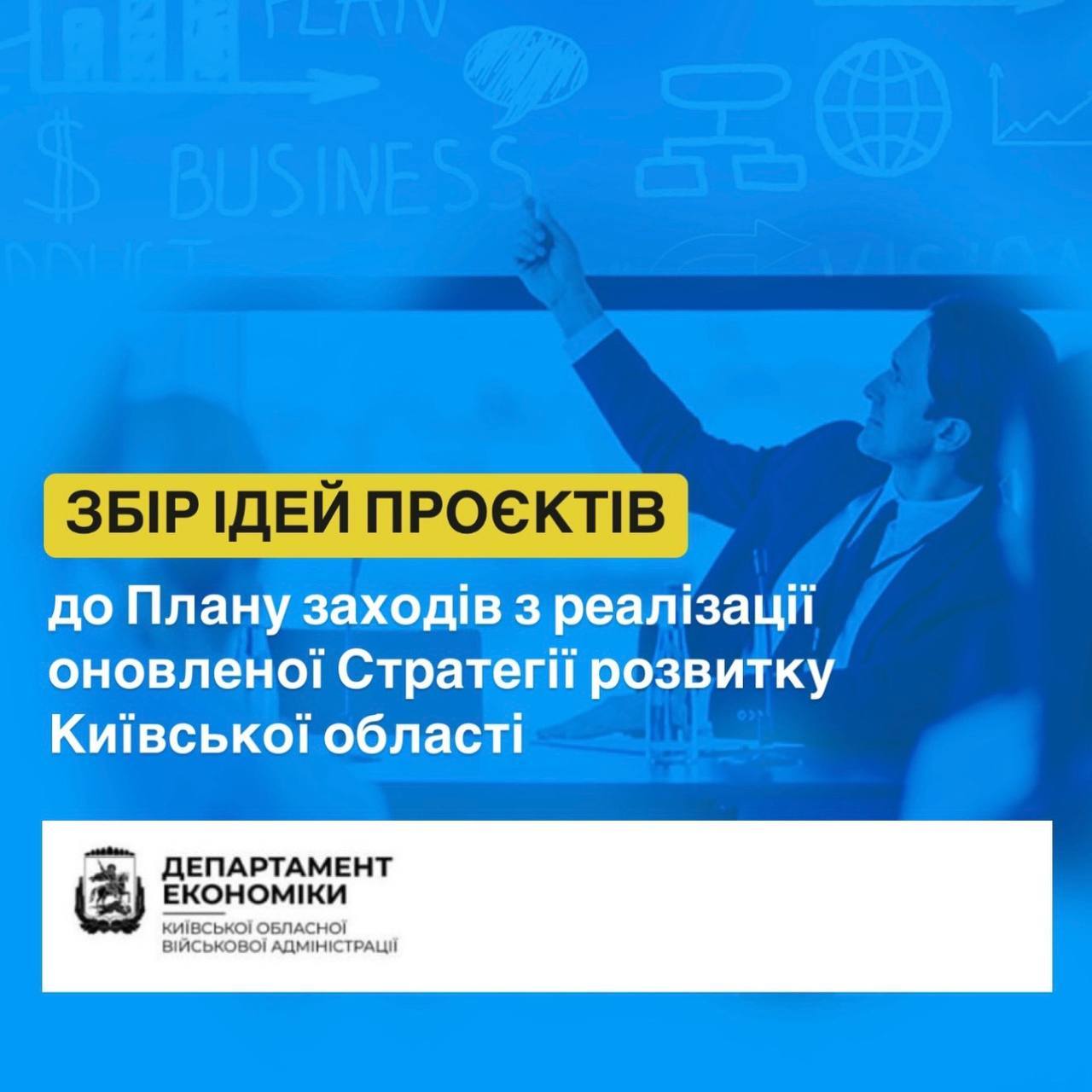 Деталі за посиланням: https://koda.gov.ua/departament-ekonomiky-kyyivskoyi-oblasnoyi-derzhavnoyi-administracziyi-ogoloshuye-zbir-idej-proyektiv-do-planu-zahodiv-z-realizacziyi-u-2025-2027-rokah-onovlenoyi-strategiyi-rozvytku-kyyivskoyi-oblast/?fbclid=IwY2xjawIJcARleHRuA2FlbQIxMQABHe5ceKDKUeAnjueu40JN72_AGC_XrvKLccjECJ4QrYZUGPkIbw6RciHD6w_aem_aa-8HAly-Vx43n1M_CIoyg