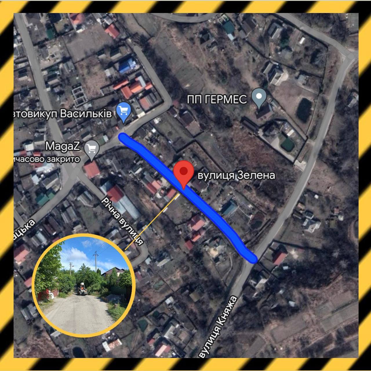 До уваги мешканців ВАСИЛЬКІВСЬКОЇ МІСЬКОЇ ТЕРИТОРІАЛЬНОЇ ГРОМАДИ та учасників дорожнього руху, КП «ККП м.Василькова» повідомляє, що на даний час по вул.ЗЕЛЕНА проводяться дорожні роботи.