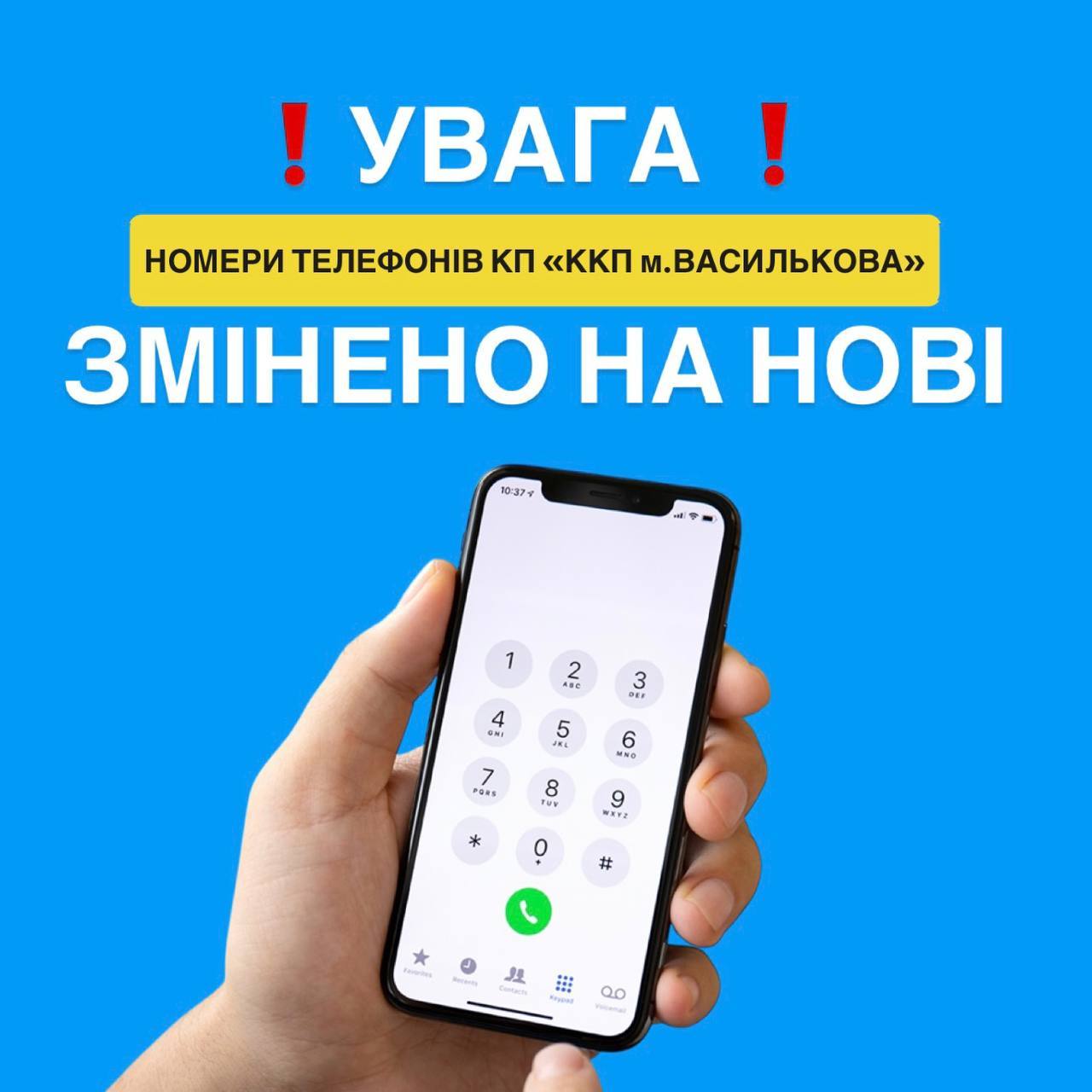Інформуємо вас, що мобільні номери диспетчерської служби КП «ККП м. Василькова» було замінено.