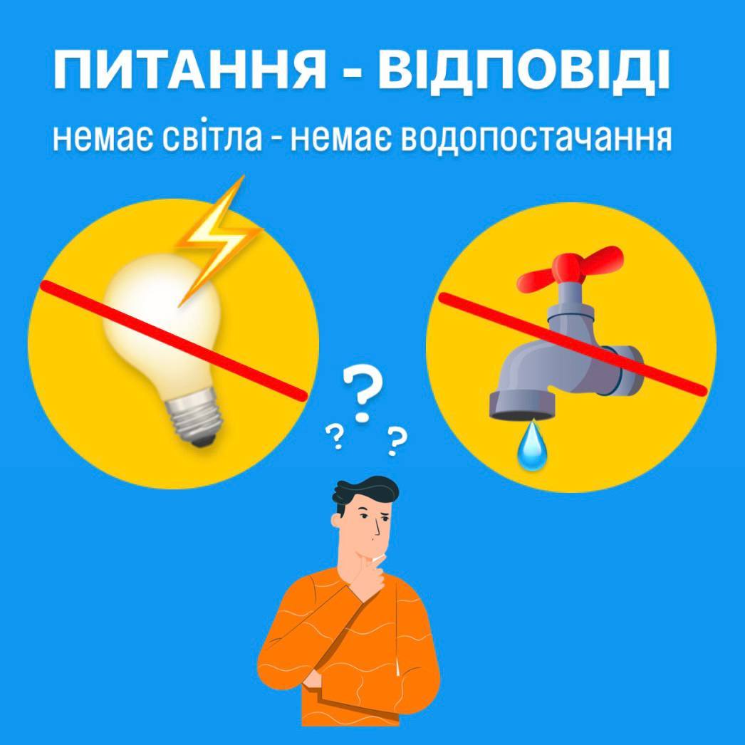Під час стабілізаційних або аварійних відключень електроенергії автоматично відключається насосне обладнання на артсвердловинах, що призводить до зниження тиску у мережах. Споживачі ще короткий проміжок часу можуть використовувати запаси води з водопроводів, але згодом водогони спустошуються.